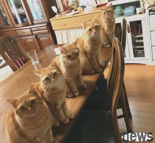 I have 5 orange cats at once, and eating every day is "very stressful". The owner: I'm really afraid that my life will be in danger!