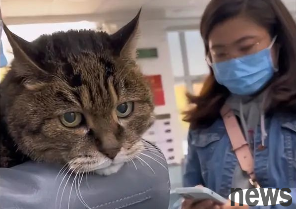 The woman couldn't help but pet the cat and took a picture of it. Although the cat's eyes had lost the light, it was still very energetic. I believe it can continue to accompany its owner for a long time.