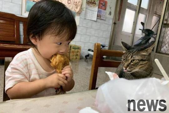 There is such a netizen who has a cat at home. Netizens are very kind to it and will always satisfy it with anything. Later, after having children at home, my love for cats shifted a bit. On this day, a netizen bought a big chicken drumstick for his child to eat. The child hugged the chicken drumstick and started chewing it! At this time, the cat saw it and ran over to look at the child. It was obvious that it wanted to eat it too! But the child's hands are tight, so how can he easily give the chicken legs to the cat?