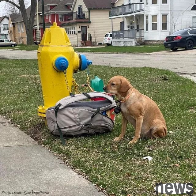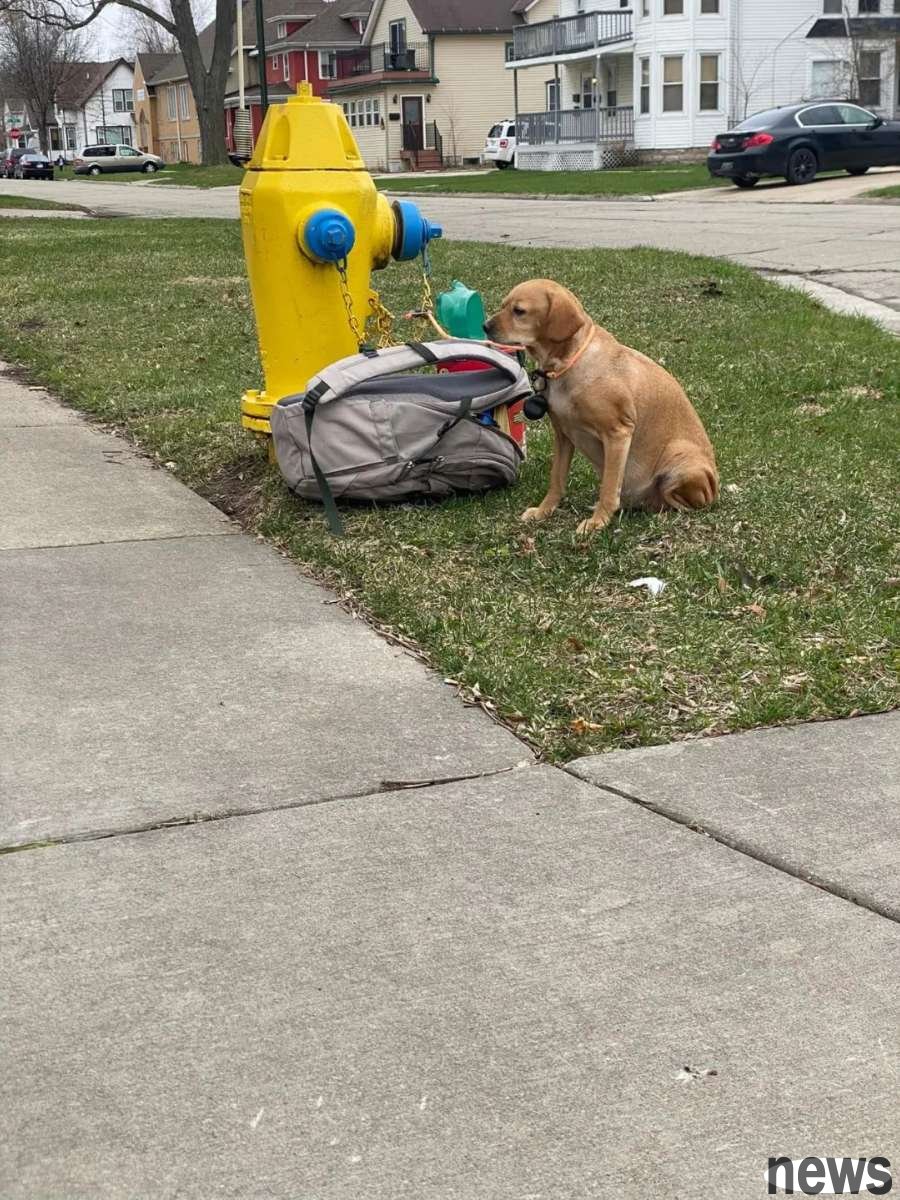 Last weekend, an American netizen found a dog on the street, tied to a fire hydrant in the community with a leash. It sat on the grass, its eyes dull, with a huge backpack and a can of stuff next to it.