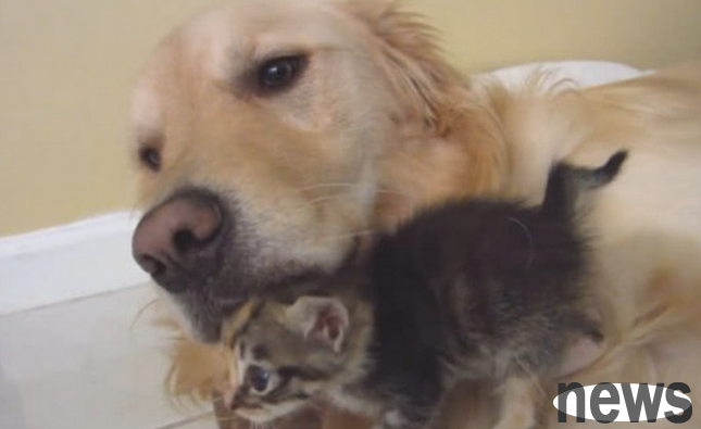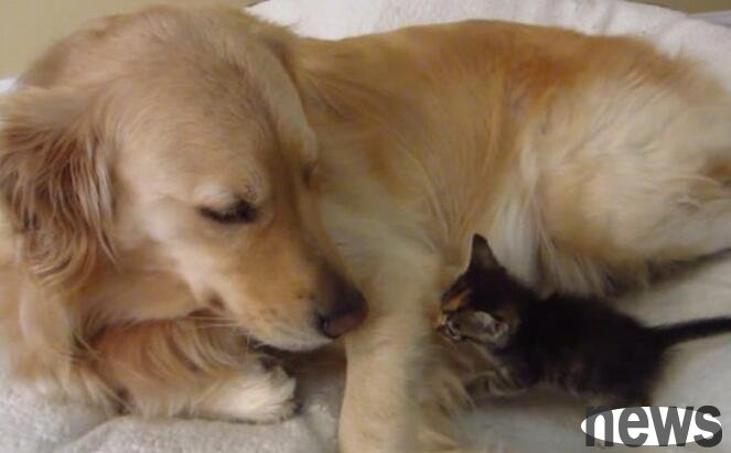 But the dog was still unwilling. After a while, the owner saw that the golden retriever had no intention of harming the cat, so he let the dog and the cat play happily together with peace of mind. After that, the owner kept the cat at home with the dog. Seeing that the cat and the dog became more familiar with each other as they played, the owner understood the role of the dog. It turned out that the cat felt lonely, so he found a little companion for himself.