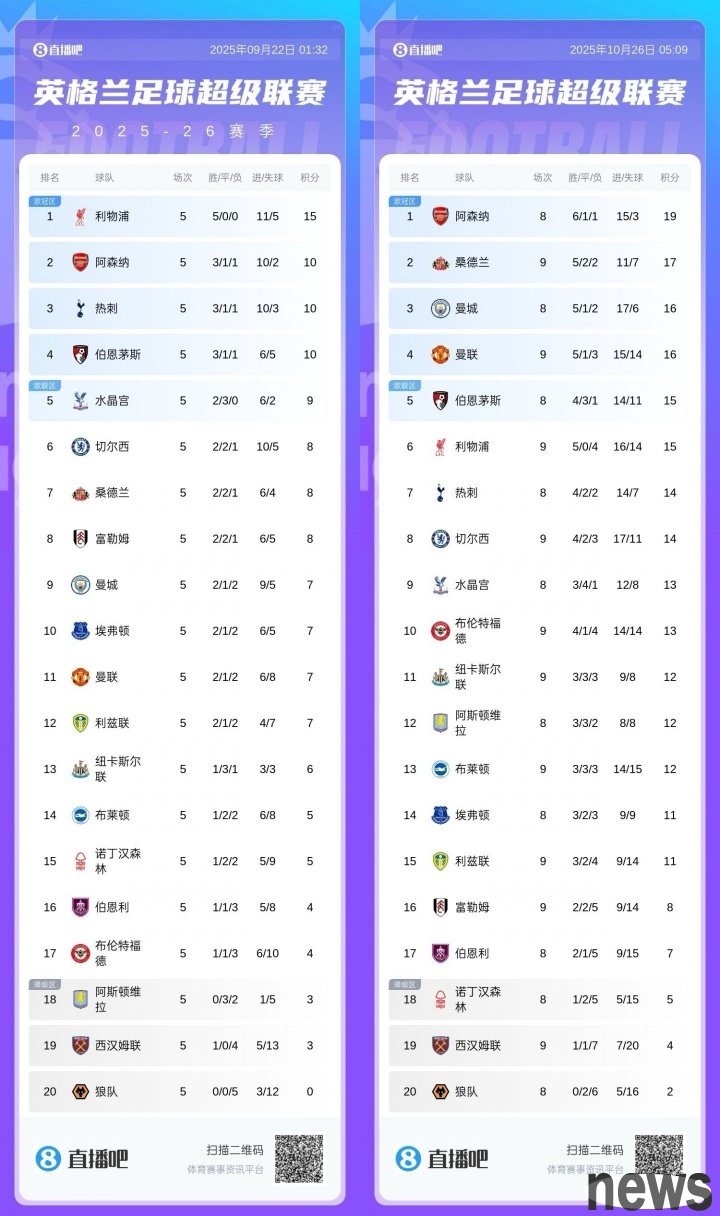 In addition, Liverpool was 8 points ahead of Manchester United in the fifth round, and now Manchester United has overtaken the Red Army by 1 point.