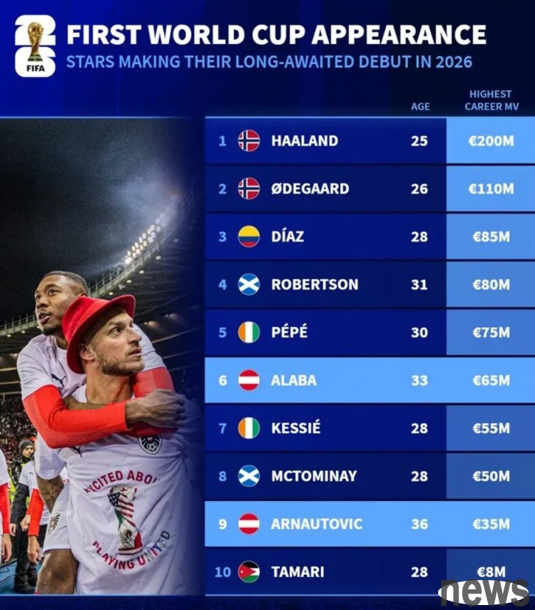 The famous players expected to make their World Cup debut in Germany: Current age and peak worth