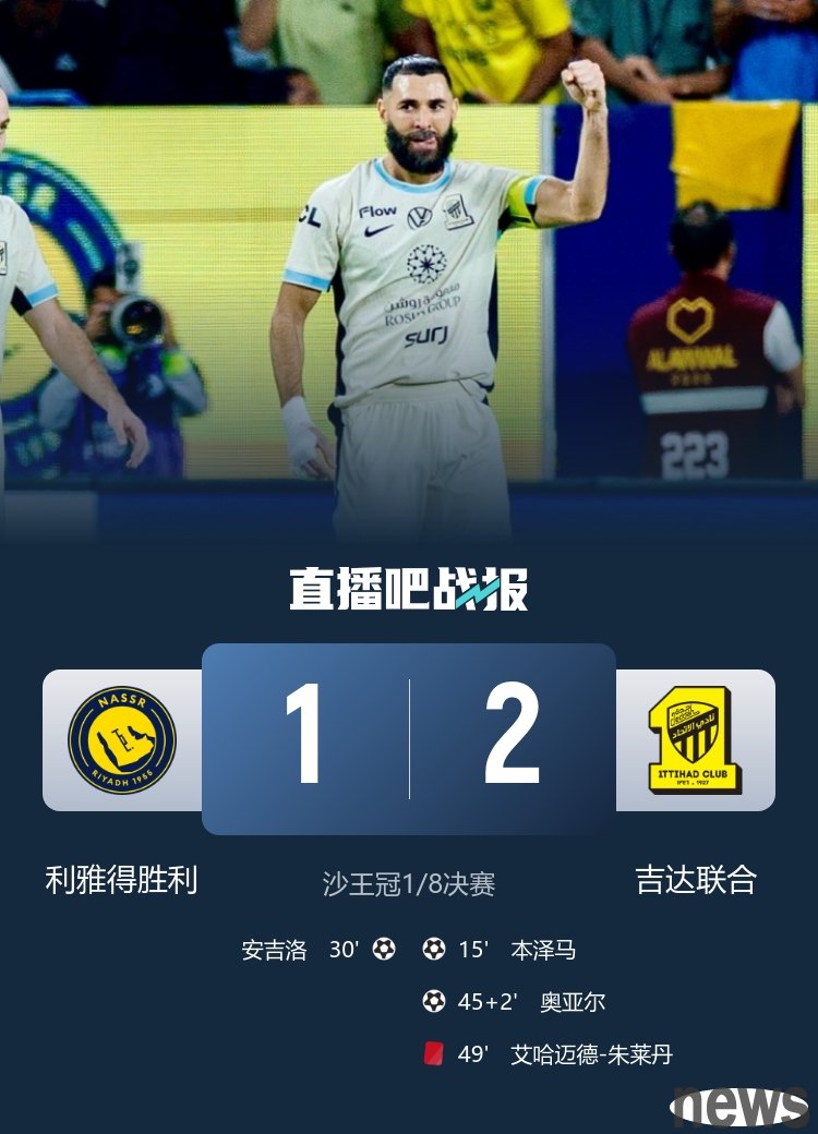 Benzema pushed and scored, Oyar volleyed, and finally Riyadh won 1-2, ten-man Jeddah United missed the quarterfinals.