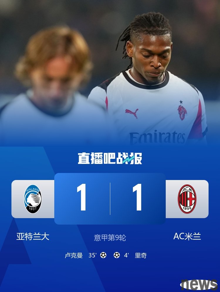 Two draws in a row! Milan 1-1 Atlanta is 3 points away from the top of the list. Ricci scored from a long shot and Leo retired injured at halftime.