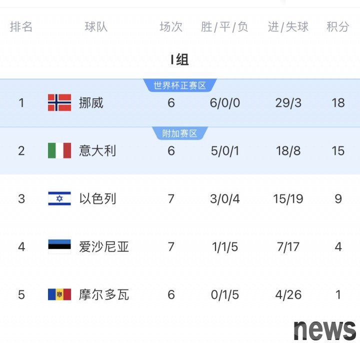 In this World Cup preliminaries, Norway won 6 games and scored 29 goals and conceded 3 goals, with a goal difference of 26 goals, which is 16 more goals than the second-place Italy.