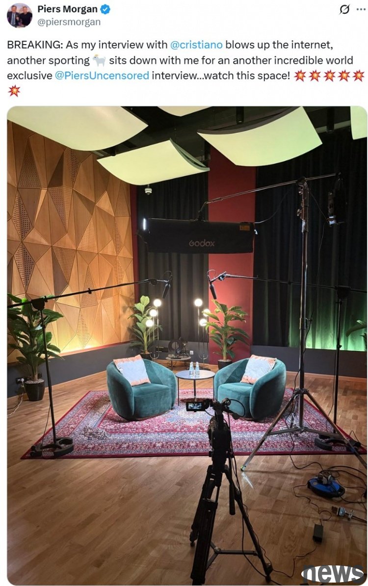 Morgan's social media wrote: "As my exclusive interview with Cristiano Ronaldo set off the Internet, another GOAT in sports will also come to my show for an exclusive interview. Take a look at the set photos first!"